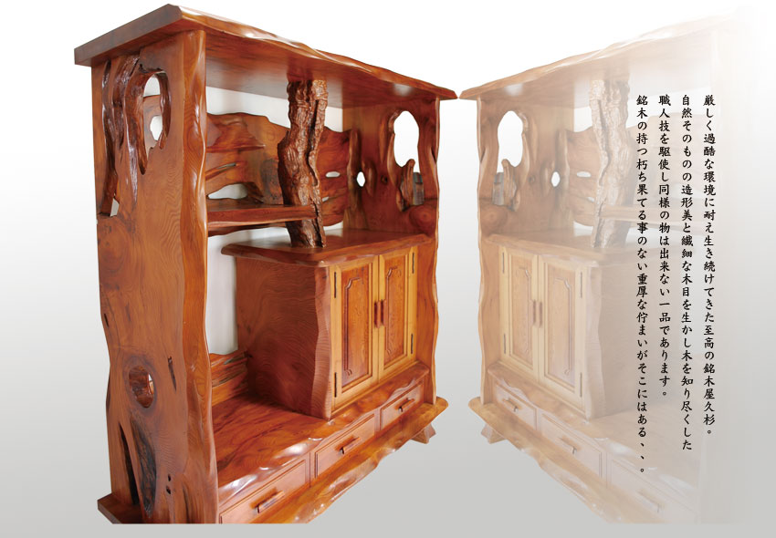 屋久杉飾り棚関連商品は、上写真以外各種お取り扱い致しておりますので詳しくは、御気軽にお問い合わせ下さい。
